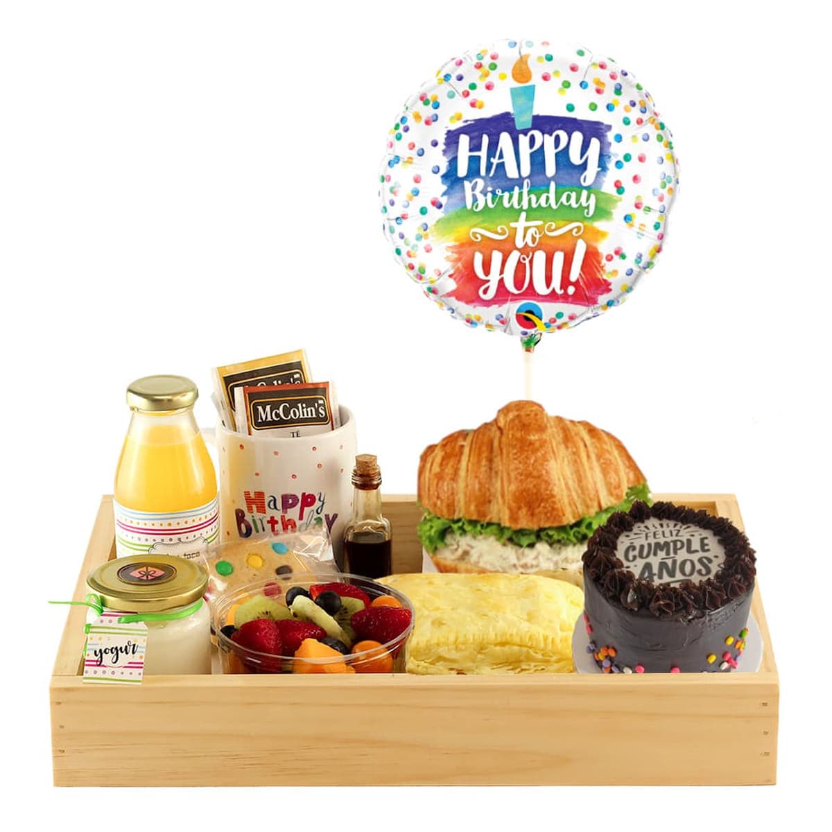 ¡Desayuno para un día feliz! Desayuno Cumpleaños Feliz, el regalo perfecto para celebrar. ¡Un inicio lleno de sabor y alegría! * Pedidos se reciben hasta las 6:00 pm del día anterior al envío.