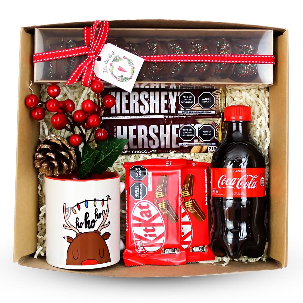 Taza ☕, Alfajores, KitKat, Hersheys 🍫 y Coca-Cola. ¡El regalo perfecto para los amantes del chocolate y la dulzura navideña! 🤤