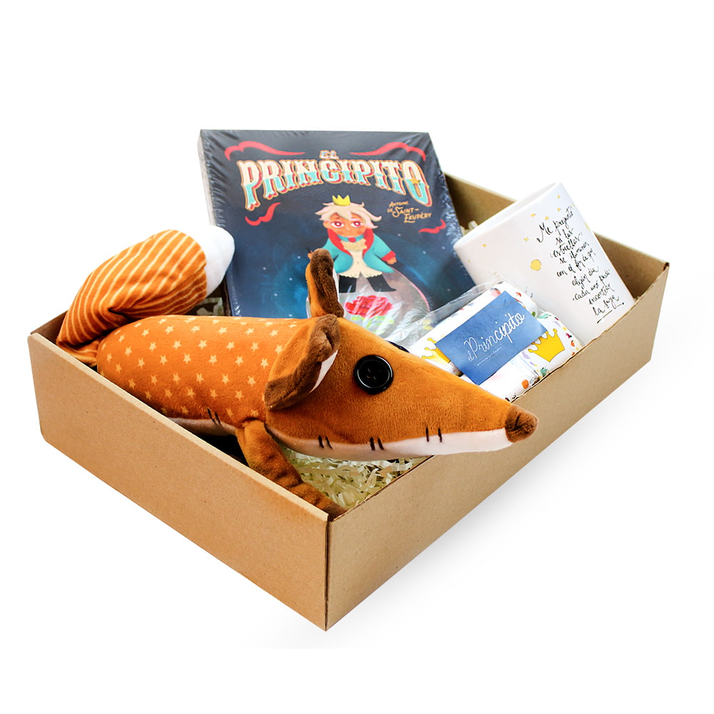 Un regalo lleno de magia que incluye el libro El Principito 📘, un tierno peluche de zorrito 🦊, chocolates 🍫 y una hermosa taza ☕. Ideal para sorprender y emocionar 💛.