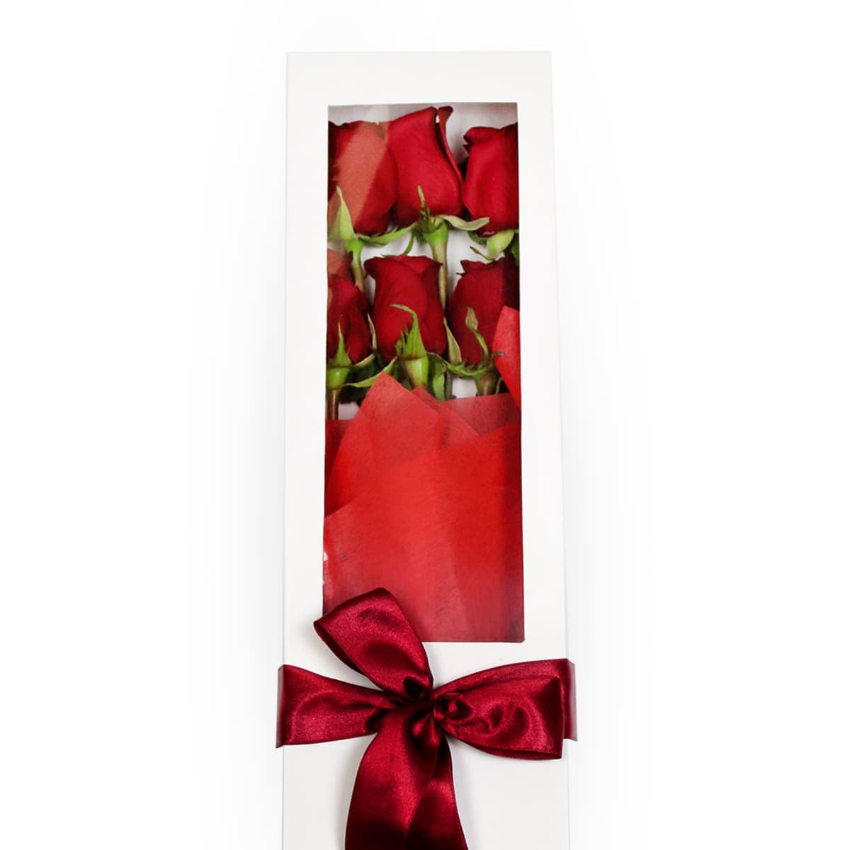 ¡Un detalle que enamora! Regala esta caja con 6 rosas rojas. El obsequio perfecto para celebrar el amor y la pasión. ¡Inolvidable!