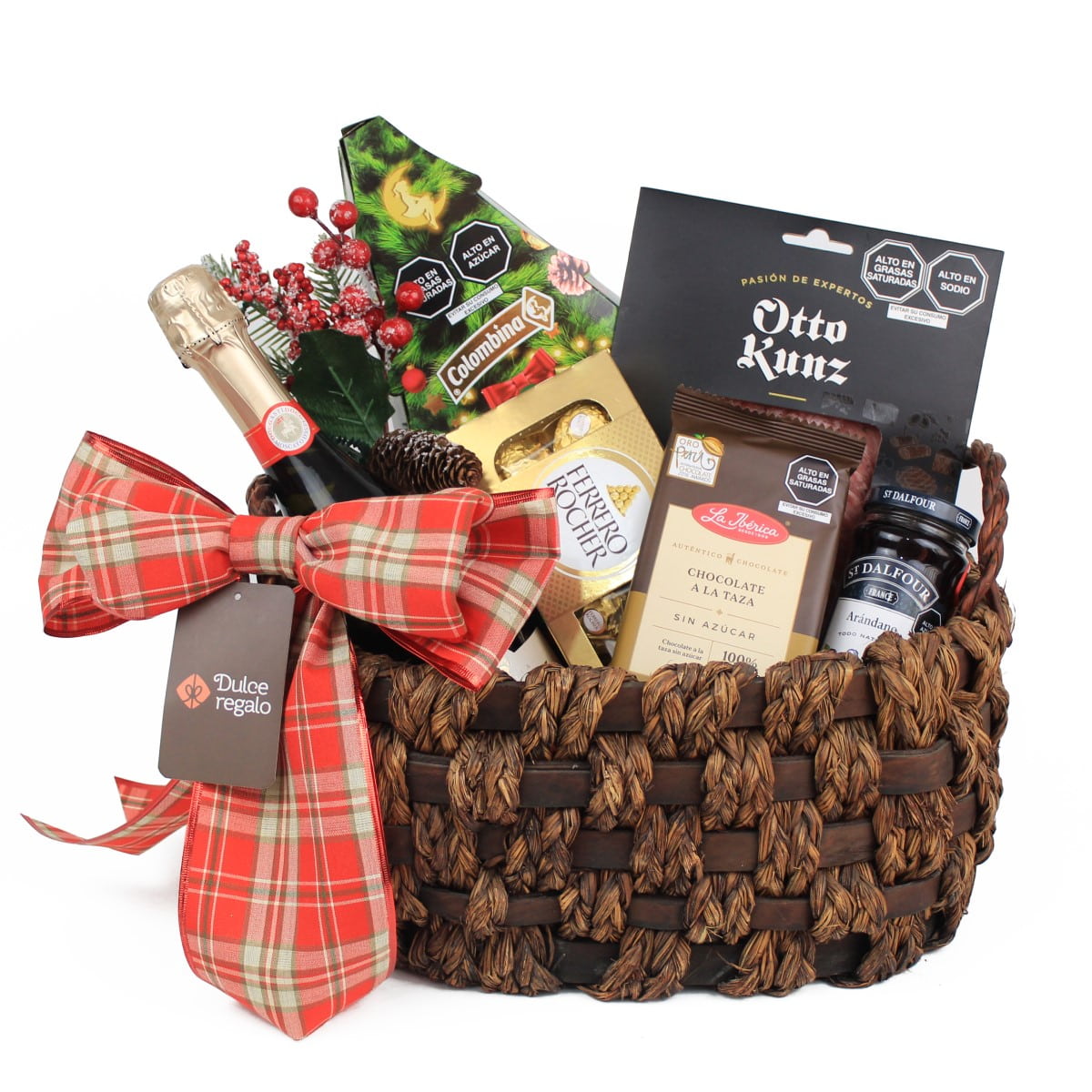 Lujoso regalo con Champagne 🥂, Salchichón Español, chocolates Ferrero, mermelada gourmet y más. ¡El detalle más exquisito para esta Navidad! ✨