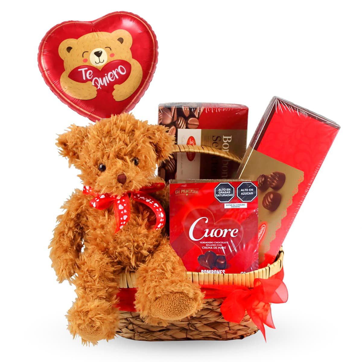 ¡Puro chocolate y pasión! Esta cesta es el regalo perfecto para los amantes del cacao. ¡Un detalle dulce e irresistible!