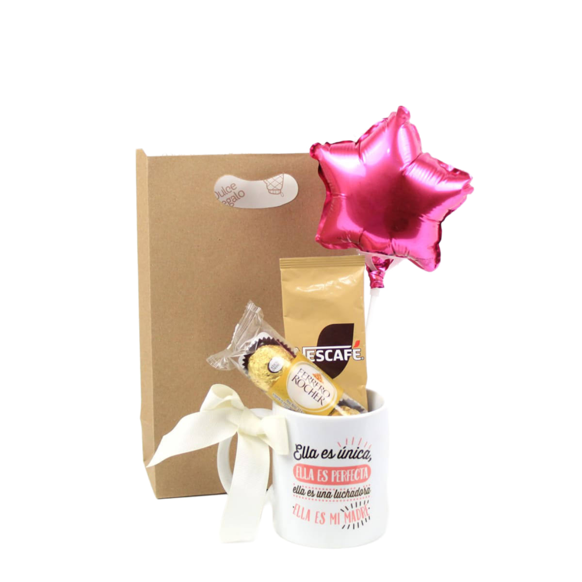 Demuestra tu amor con el pack regalo para mamá: una hermosa taza acompañada de chocolate y cappuccino. Dulzura, ternura y calidez en un solo detalle.