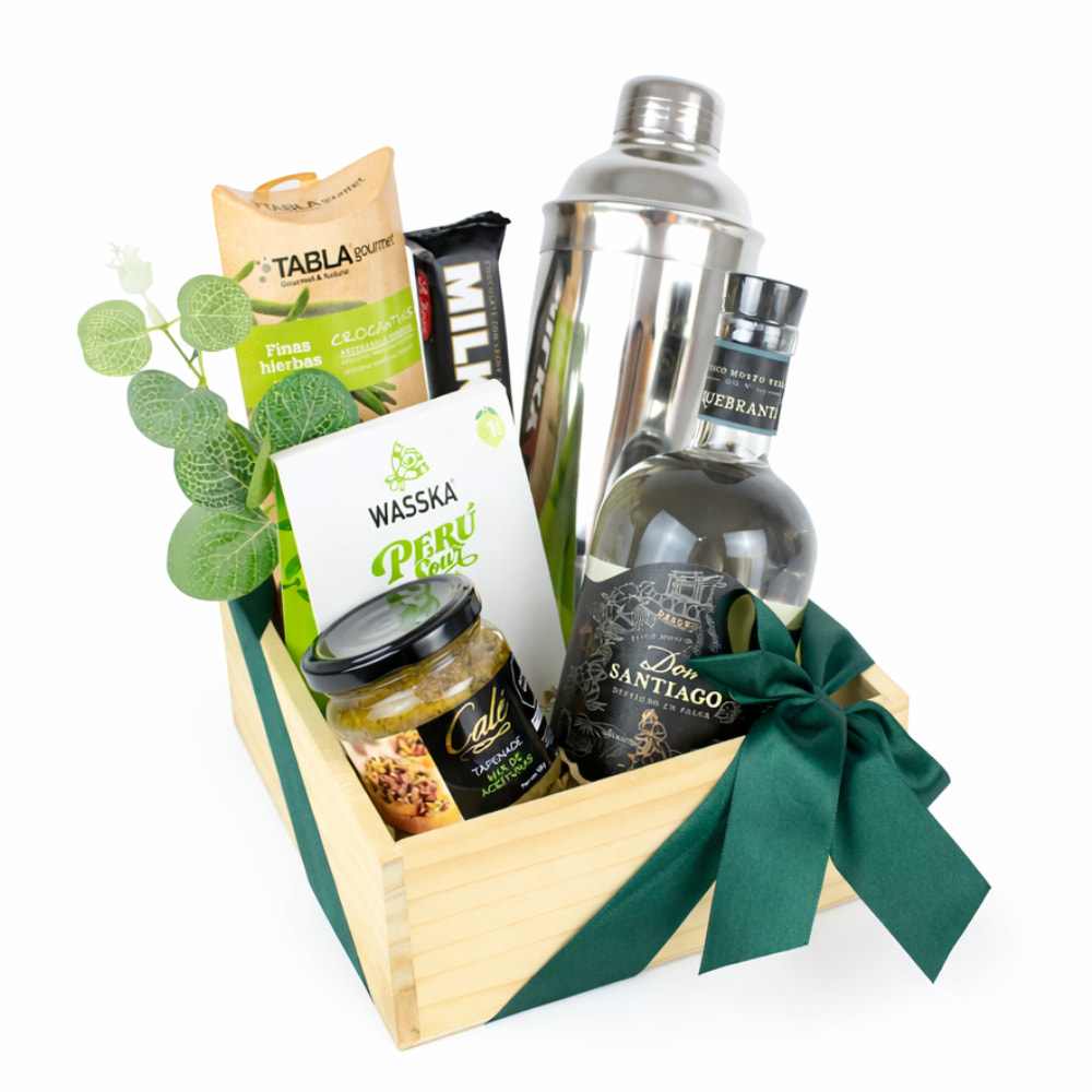 ¡El regalo que todo amante del Pisco Sour merece! 🍸✨ Sorprende con una experiencia de bar completa: la calidad de Pisco Don Santiago, una coctelera profesional, base lista para mezclar y el toque gourmet de aceitunas y chocolates. 🍫🫒 ¡Listo para abrir, preparar y brindar! 🎁🥂