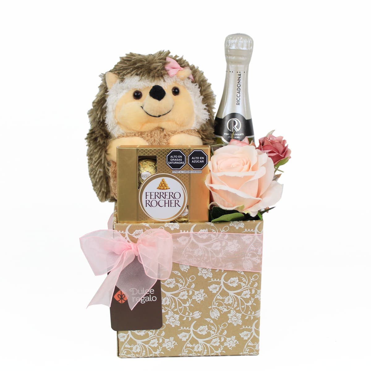 ¡Sorprende con este tierno detalle! Peluche, espumante, chocolate y rosa. Un regalo dulce y romántico para enamorar.
