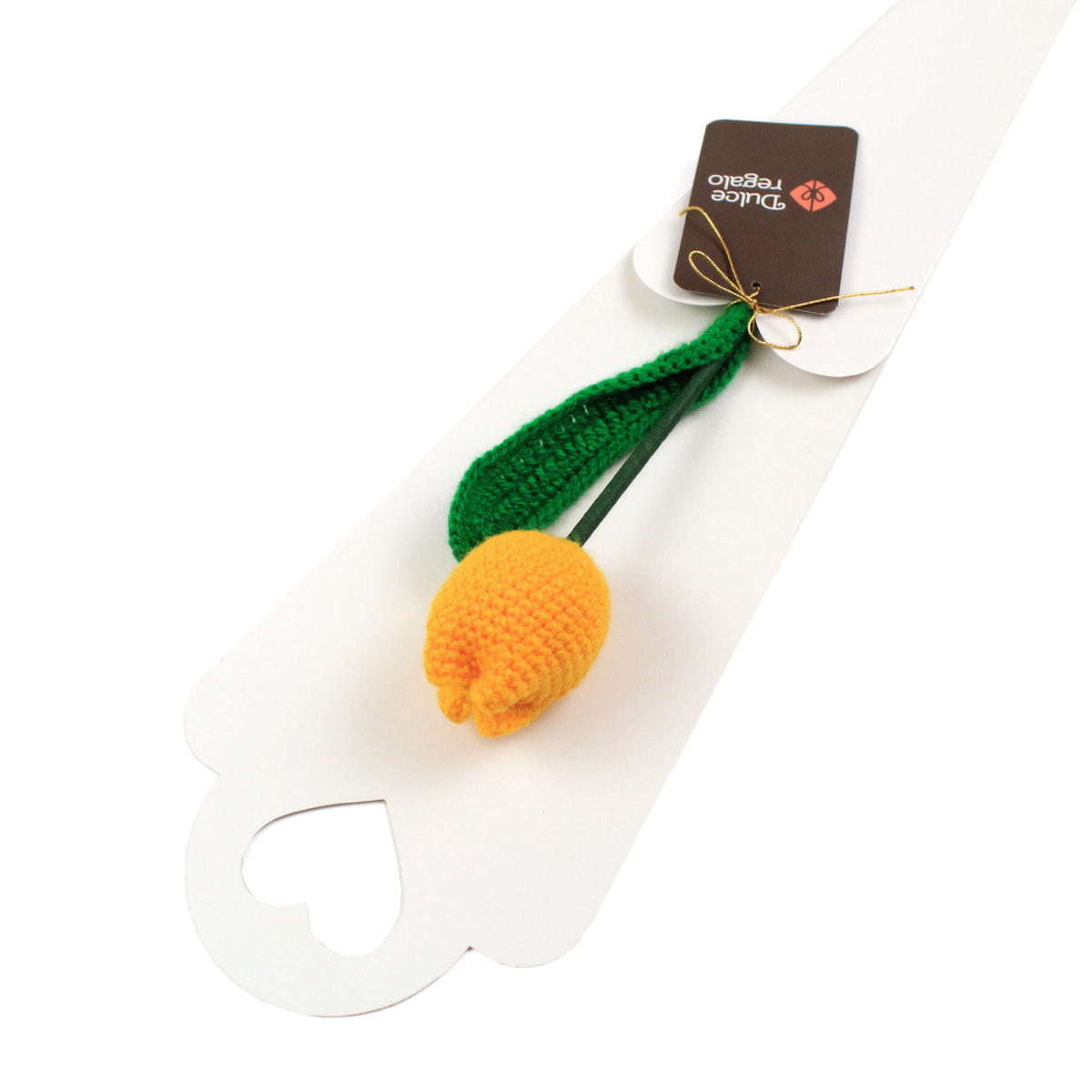 Ilumina cualquier ocasión con un tulipán amarillo tejido a crochet. Un regalo artesanal y único que simboliza amistad, felicidad y buenos deseos.